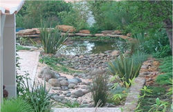 - Confeção de ribeira seca com seixos rolados e pedra natural